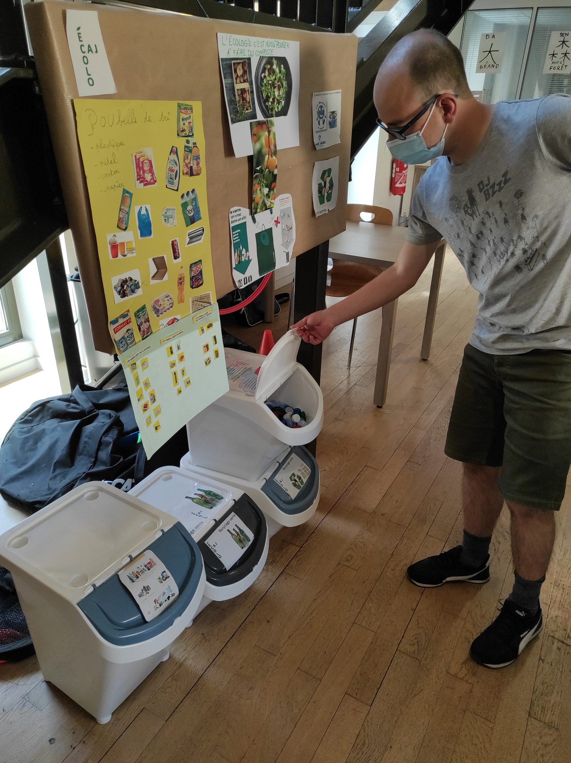 Un espace de tri a également été mis en place. Carton, verre, plastique… tout est organisé pour valoriser les déchets. Même un compost a été installé dans le petit jardin-potager du CAJ.