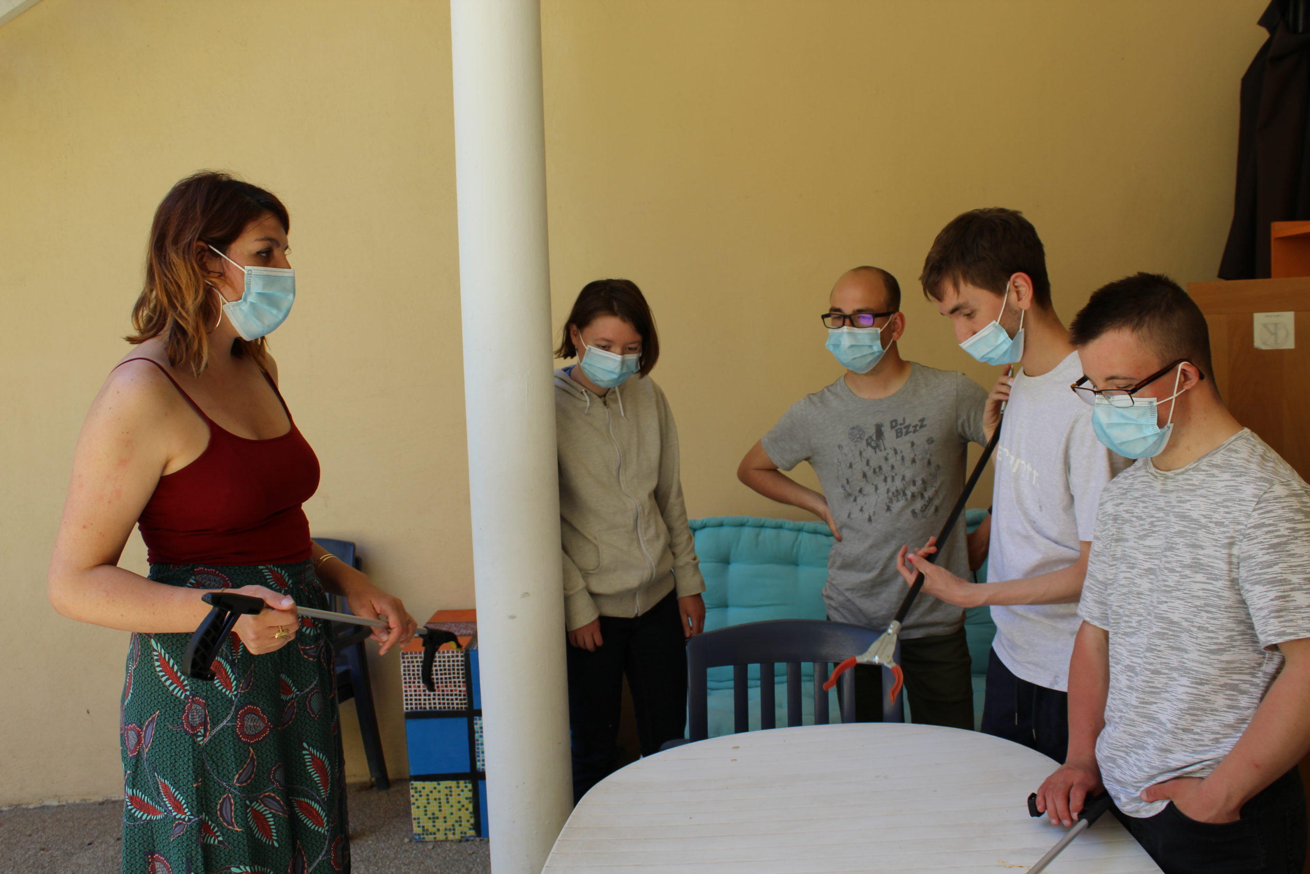 Chaque lundi après-midi, Maël, Ludovic, David, Anna et Benjamin se retrouvent dans la lumineuse salle du CAJ pour un atelier écologique. Plusieurs activités s’organisent. La brigade verte semble remporter un certain succès : pour se faire, le petit groupe part pour quelques heures, soit proche de l’établissement sur les quais de Saône, soit plus loin comme autour du lac de Miribel. Armés de pinces de nettoyage, ils permettent aux lieux publics de respirer en jetant les déchets sauvages.