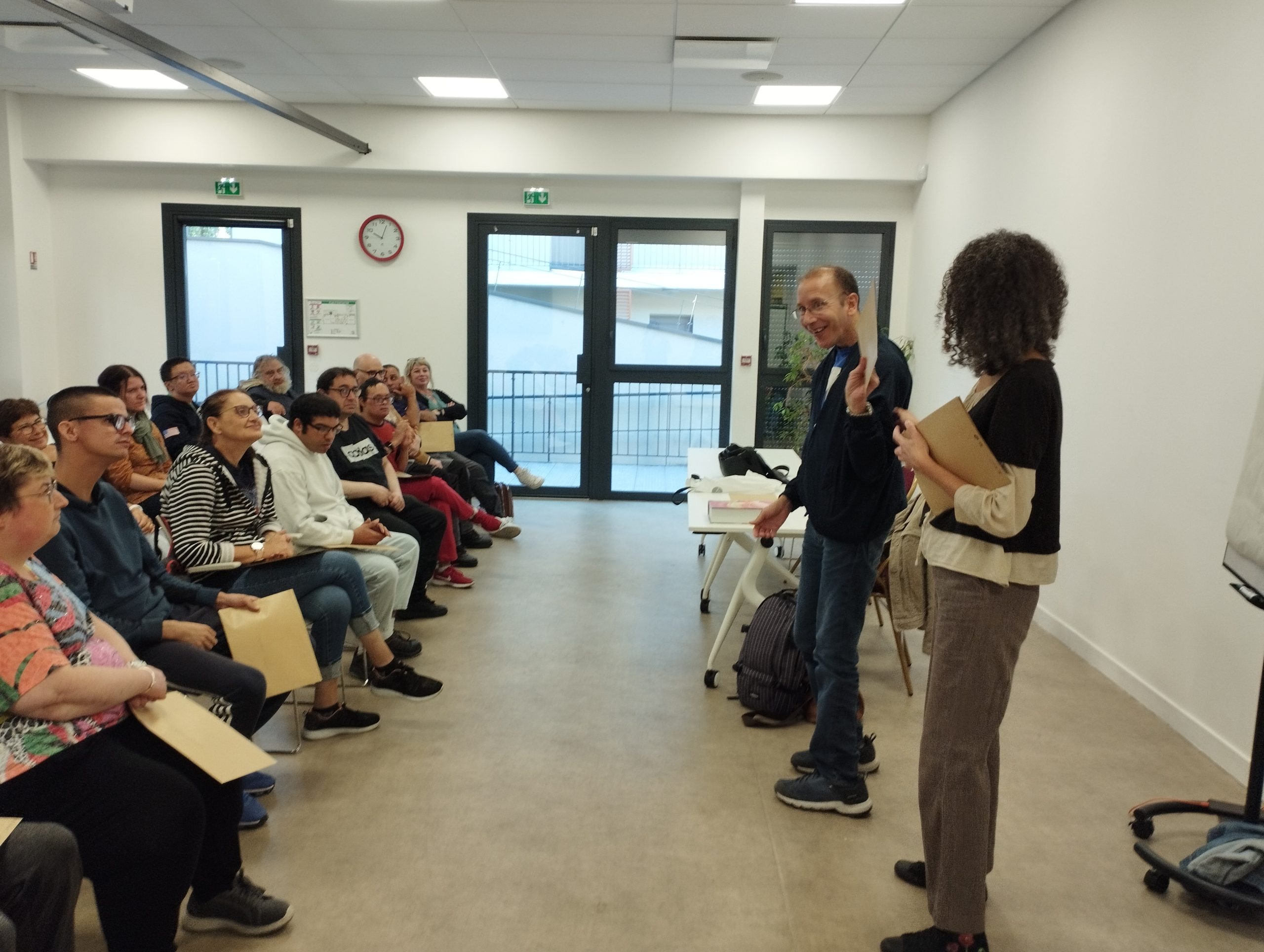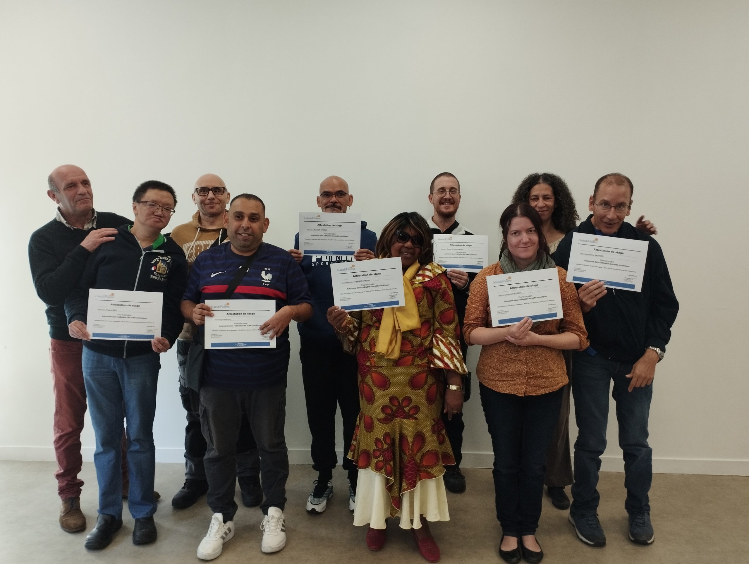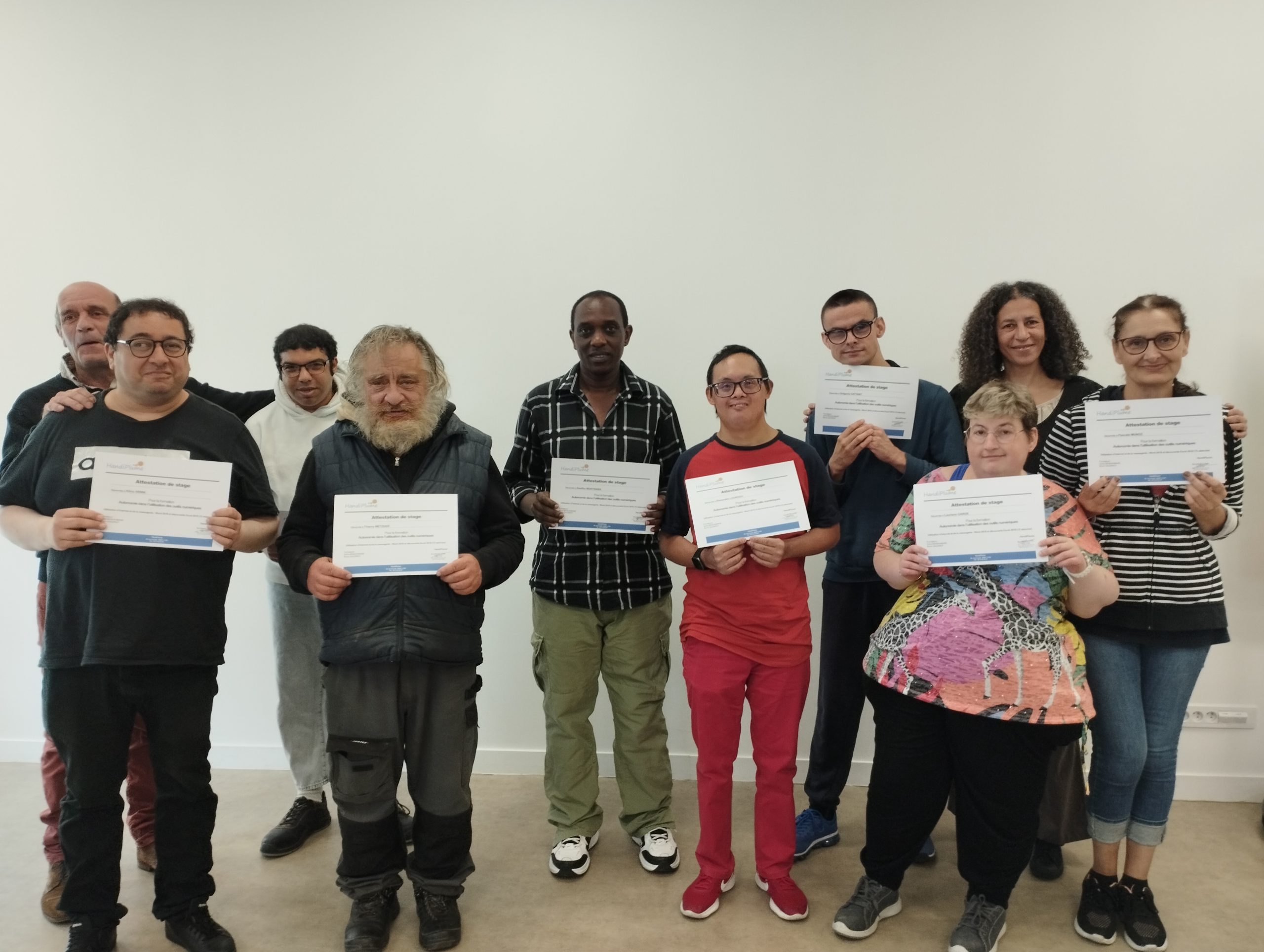 De janvier à avril, tous les lundis, 20 travailleurs d’ESAT se sont retrouvés à l’Extra, l’espace séminaire de l’ESAT Hélène Rivet pour découvrir ou acquérir de nouvelles compétences digitales et bureautiques. Les 12 séances ont été organisées intégralement par l’organisme de formation Handiplume dans les locaux de l’ESAT Hélène Rivet. Ainsi, sous l’œil attentif de Zora, formatrice et Bruno Gaudriot, formateur et responsable d’Handiplume, les travailleurs en situation de handicap ont pu renforcer leurs connaissances.